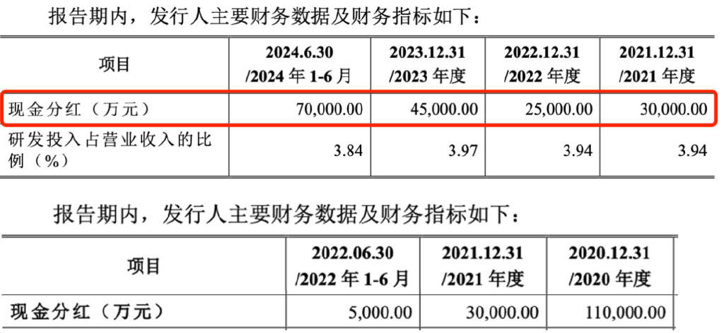 招股书显示,2020年至2024年上半年,公司现金分红分别为11亿元、3亿元、2.5亿元、4.5亿元和7亿元,四年半合计分红28亿元,分红金额已经超出收购时的分红安排。