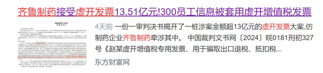 医药巨头齐鲁制药涉13.5亿虚开发票案 300多名员工也被坑了