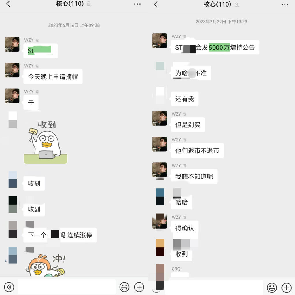 2023年6月,他曾经预告某股票即将在当晚申请“摘帽”,群友闻之大量入手。结果,该公司当晚并未披露该消息,群友们随之亏损,有人买入95万元亏损10万元,有人买入120万元亏损14.7万元,有人买入1000万元亏损65万元。