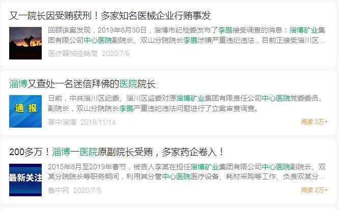 另外,根据多处公开信息,案号为(2020)鲁0302刑初2号的判决书显示,曾担任淄博矿业集团有限公司中心医院副院长、双某分院院长的李某因受贿罪和单位受贿罪合计金额超200万元,数罪并罚后决定判处其执行有期徒刑三年十个月,并处罚金人民币20万元。