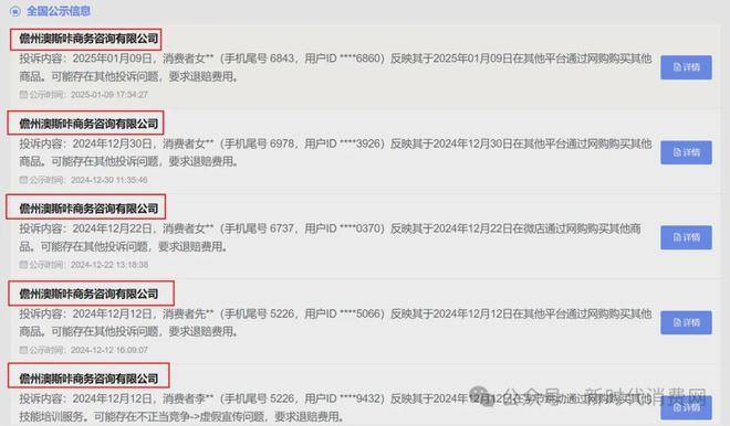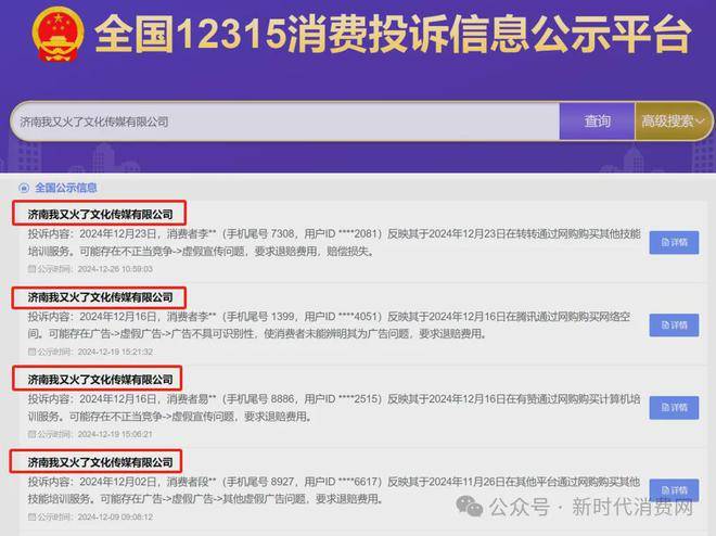 在直播间的收款码上,收款单位名称又显示为海南未来探索信息科技有限公司等企业名称。媒体将上述企业在全国12315投诉信息公示系统查询后发现,三家企业有多起投诉,自2024年7月以来分别被投诉42次、8次、1次,大多涉及技能培训。