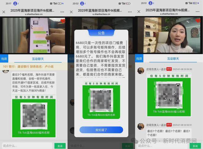 “欣哥”还通过直播间或者微信向网友介绍的另外两个项目则为咸鱼和转转二手电商的运营,声称当天一次性支付3599元,赠送价值6799的转转项目,一次付费,到手两个项目一起做。可签合同,开发票最后3个名额,故意营造紧张气氛,让网民感受到一种很多人都在考虑报名的假象,并通过群消息通知明天恢复原价9000元。