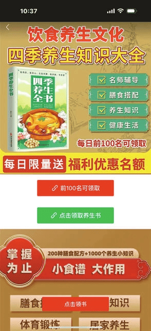 10月17日,记者在网上看到一则“四季养生食补书”速领广告,声称回答问题、添加老师,即可领取四季养生知识书籍。在回答了年龄多大、是否关注养生、能否坚持学习等问题后,记者免费获得了30天的直播课程。记者发现,该引流广告页面内容由广西百香果文化传媒有限公司提供。根据提示,记者点击添加客服人员,页面显示该客服人员标称“群主-薛宇”,是企业微信联系人,所在企业为陕西富益健康信息咨询有限公司。