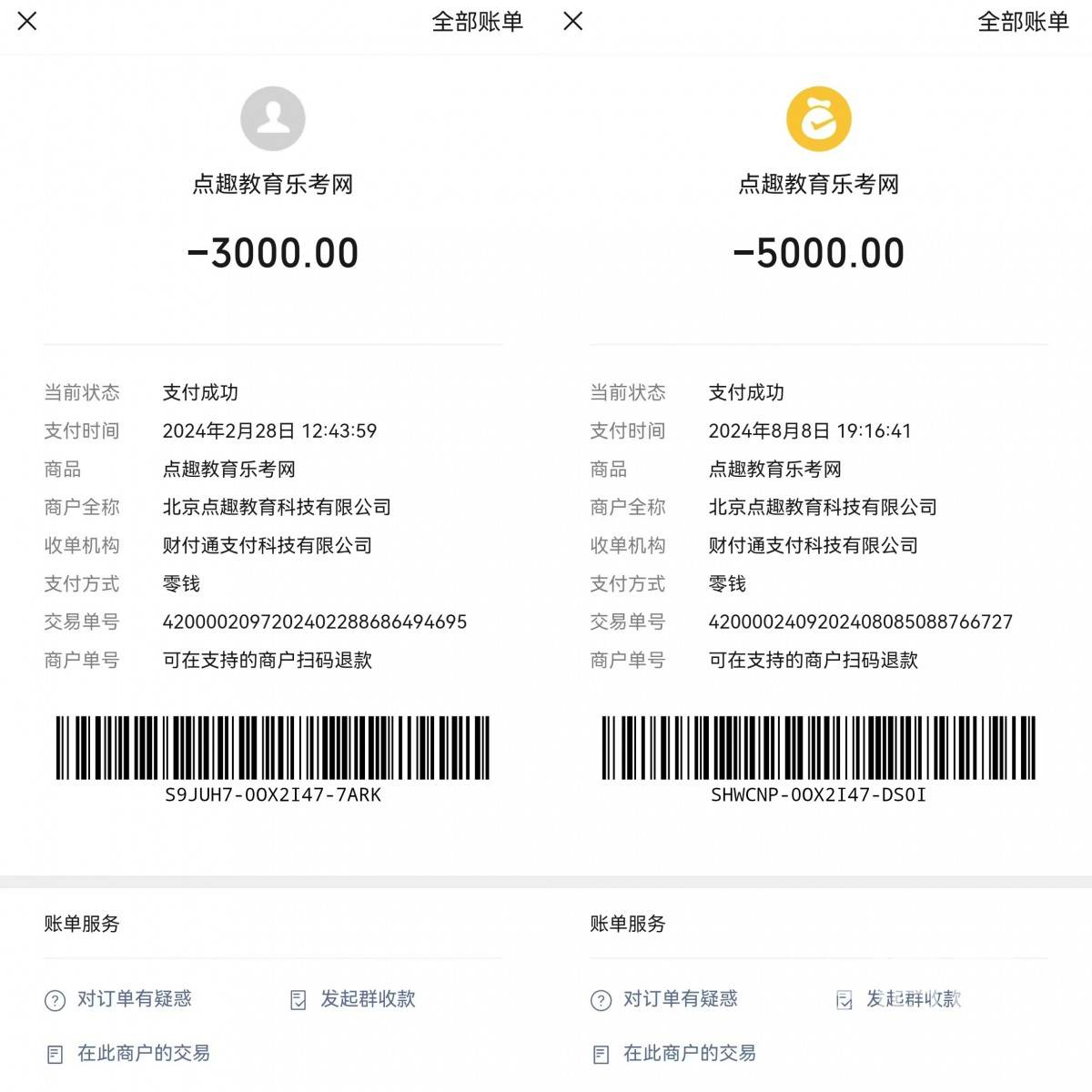据了解,乐考网创立于2010年,所属点佳教育科技(石家庄)有限公司也是北京点趣教育科技有限公司旗下品牌,其面向社会提供金融类、财会类、工程类等网络培训服务。信网在某投诉平台搜索发现,关于乐考网投诉问题已高达1000余条,大多都是因为宣传的“不过包退”引起不满。目前,乐考网方面同意给学员退费4000元,但双方协商未达成一致。