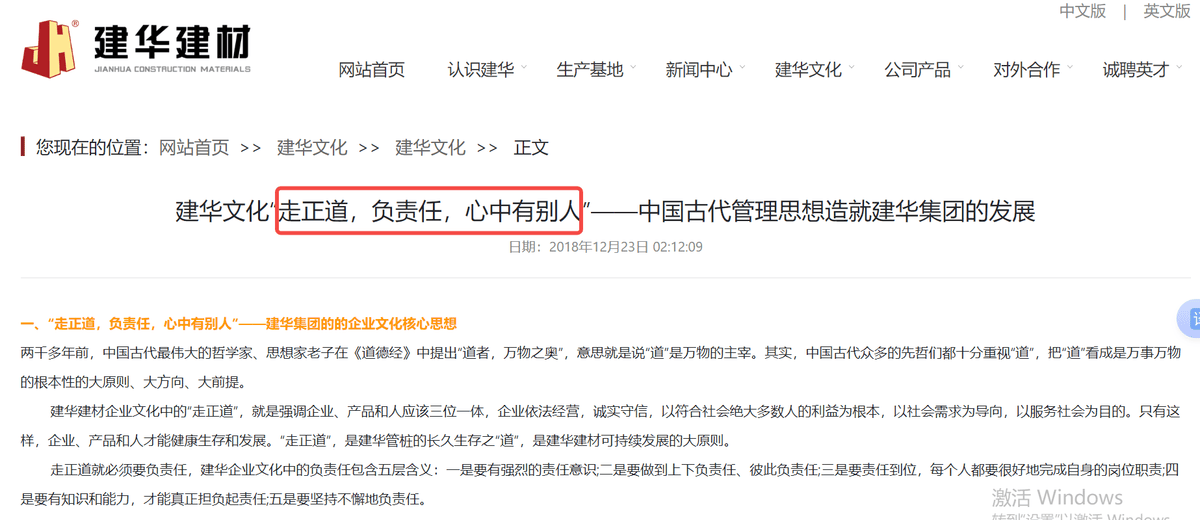 建华建材自称国家住宅产业化基地、制造业单项冠军示范企业,自创立之日起,始终坚持“走正道、负责任、心中有别人”的企业文化,强调企业、产品和人应该三位一体,企业依法经营,诚实守信,以符合社会绝大多数人的利益为根本,以社会需求为导向,以服务社会为目的。