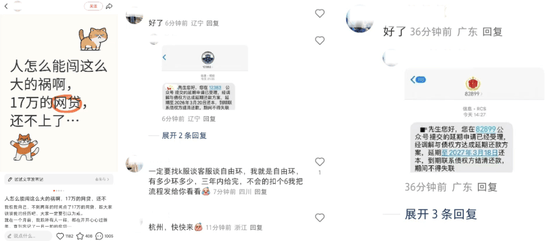 但柒财经注意到,当前在小红书上,“停息挂账、负债协商、x折借债”的帖子并不少见,发帖的大部分是律师事务所,告诉用户欠款逾期不要慌,可以协商延期还款,甚至声称免费。接着沟通,律师事务所通常会私信,“这里敏感词过多,可以留个微信,安排律助和您对接。”