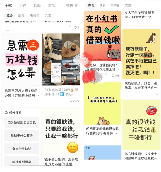 熙熙攘攘皆为利来。也因此,很多用户吐槽:“现在的小红书,不仅助贷机构越来越多,就像“缺钱了怎么办”“急用钱但无人可借”“轻松解决资金周转困难”的广子也越来越多。乌七八糟的。”