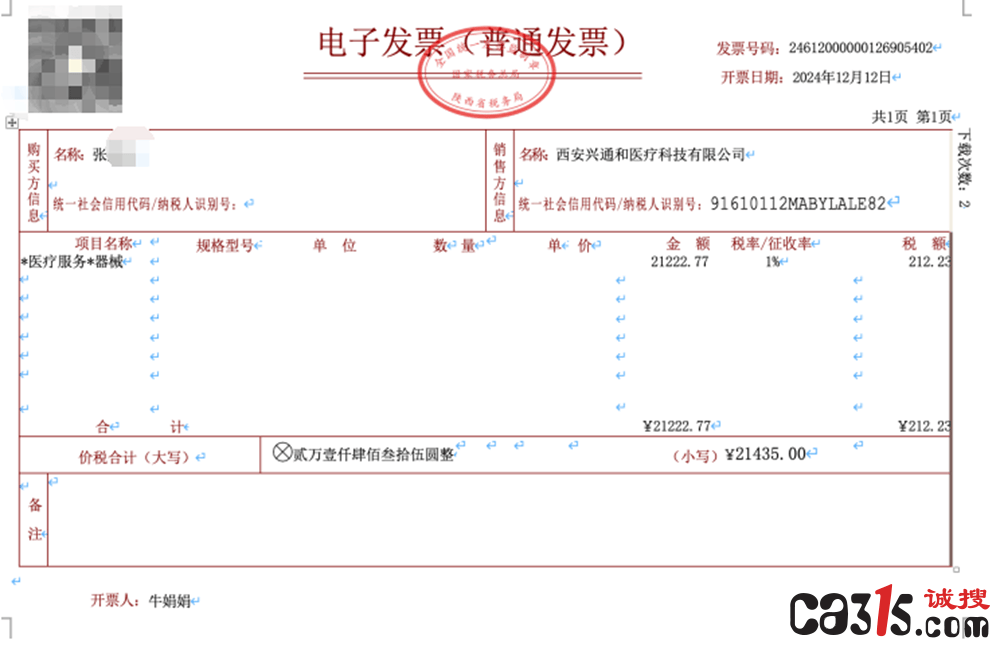 315诚搜网发现,在李女士提供的转账记录中,也有“王昭”的名字,是否与西安兴通和医疗科技有限公司法定代表人王昭为同一个人,未能进行查证。
