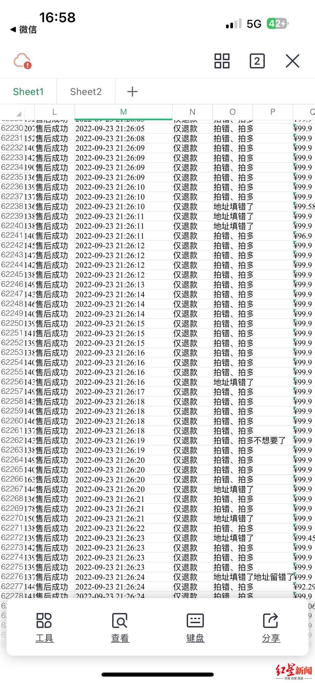 ▲商家提供的退款订单