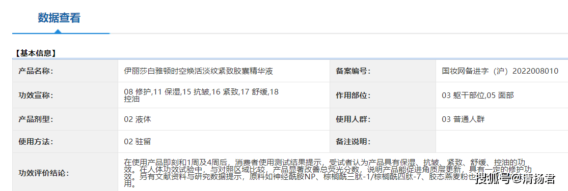 清扬君查询发现,这款进口的伊丽莎白雅顿时空焕活淡纹紧致胶囊精华液【国妆网备进字(沪)2022008010】,在药监局官网备案的功效确实没有抗老。