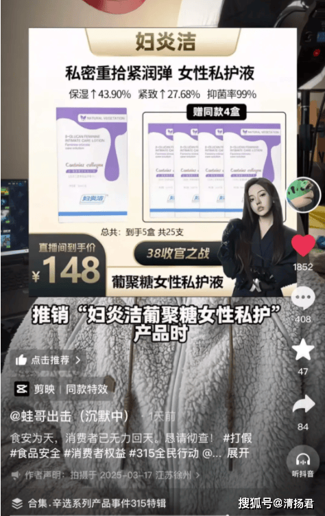辛巴团队直播带货风波再续:妇炎洁葡聚糖私护液营销惹争议
