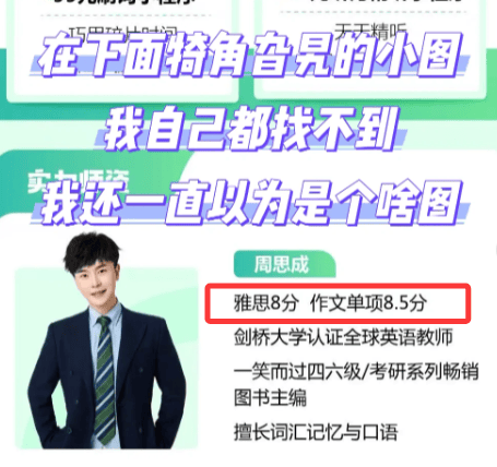 近日,有网友发现某商品详情页显示周思成“雅思8分,作文单项8.5分”,随后该商品详情页疑似删除该条简介。对此,网友质疑周思成的雅思成绩造假。