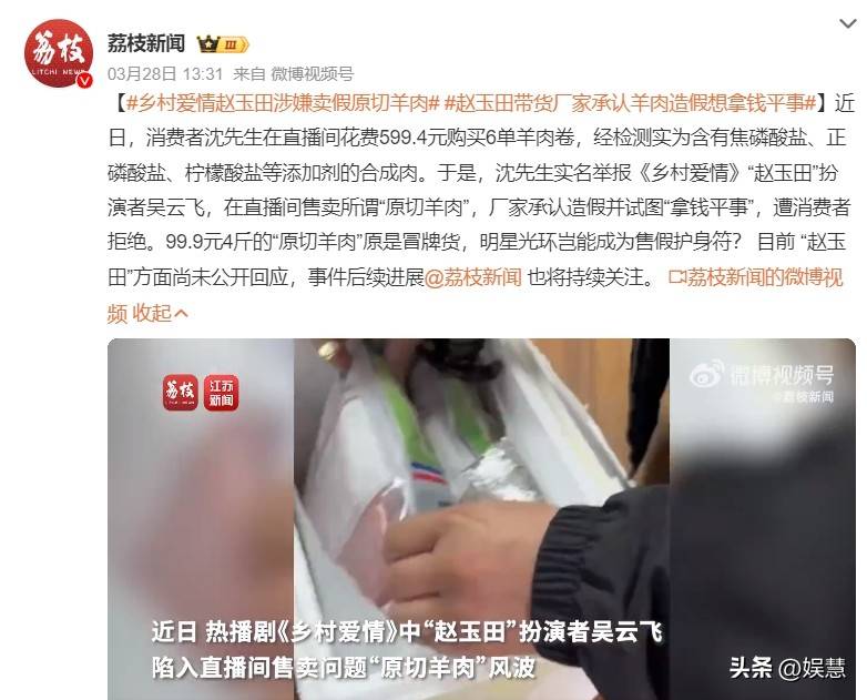 3月28日,江苏广电下辖新闻平台“荔枝新闻”报道了一则明星涉嫌售卖假原切羊肉的新闻,引发了舆论的关注。
