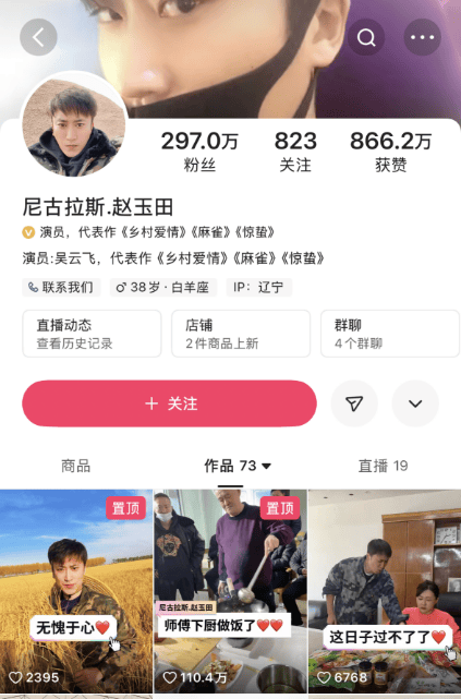 吴云飞带货账号目前有约300万粉丝,置顶作品包含赵本山在做饭的视频。