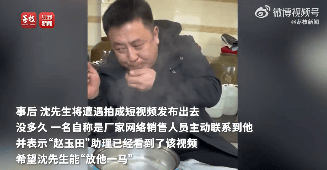 据媒体报道,沈先生将遭遇拍成短视频发布后,有自称是厂家网络销售人员主动联系他,并表示“赵玉田”助理已经看到了该视频,希望沈先生能“放他一马”,并说“老弟这边拿点钱,你把视频删一下吧”。