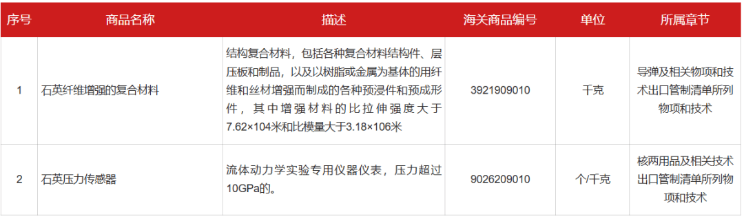 另外,赶碳号又对安徽凯盛生产的纳米钛酸钡、稀土抛光粉、高纯石英砂三类产品进行了排查:管制商品中的硫酸钡与纳米钛酸钡、管制商品中的石英纤维增强的复合材料等与高纯石英砂,均不是同类产品。