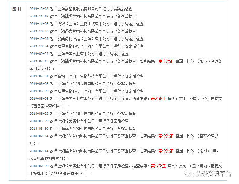 此外,“三草两木珍萃多元修护活力眼膜”、“三草两木寡肽修护精华液”、“三草两木备长炭净颜修护面膜”也都曾被责令改正过,原因也和备案材料准备与备案核查超期等有关。