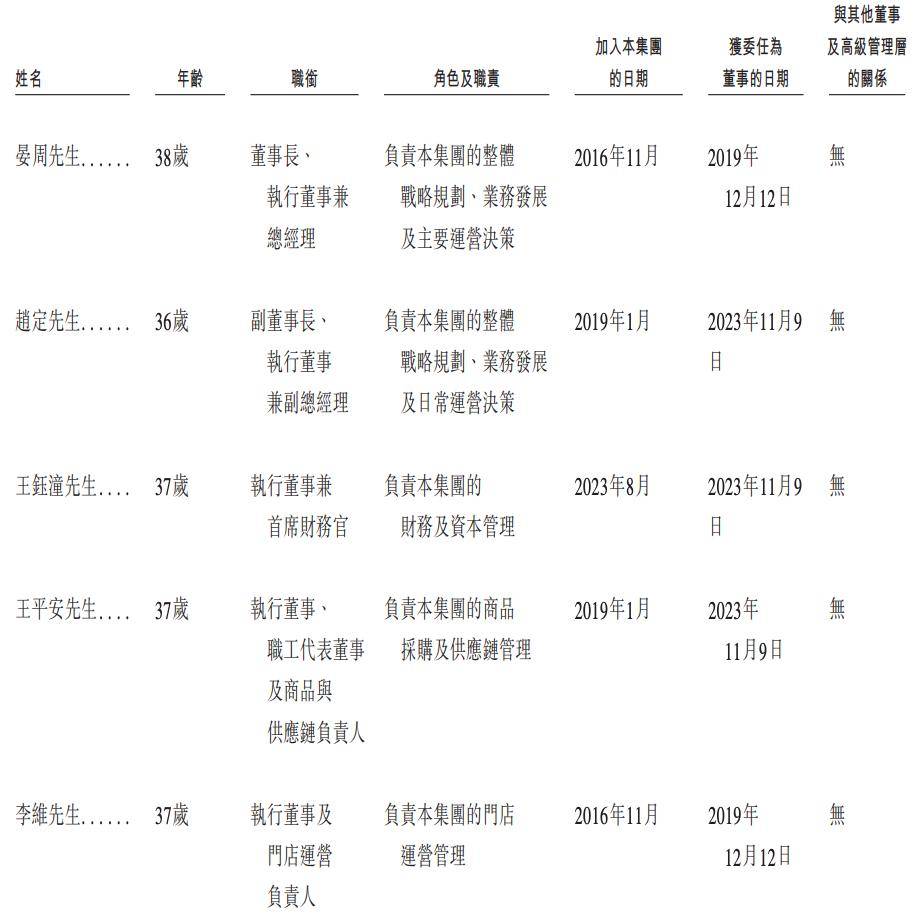 其中,赵定为赵一鸣零食创始人,也是鸣鸣很忙副董事长、执行董事兼副总经理。相比之下,零食很忙创始人则出任鸣鸣很忙董事长、执行董事兼总经理,二人的职责在招股书中表述均为“负责本集团的整体战略规划、业务发展及主要运营决策”。