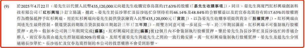 另在2025年4月22日,晏周还以代价人民币4.35亿元(即435,120,000元)向赵定收购宜春鸟窝约17.63%的股权。这意味着,赵定又通过转让宜春鸟窝的股权取得收益约4.35亿元,合计取得股权转让收益5.65656亿元。