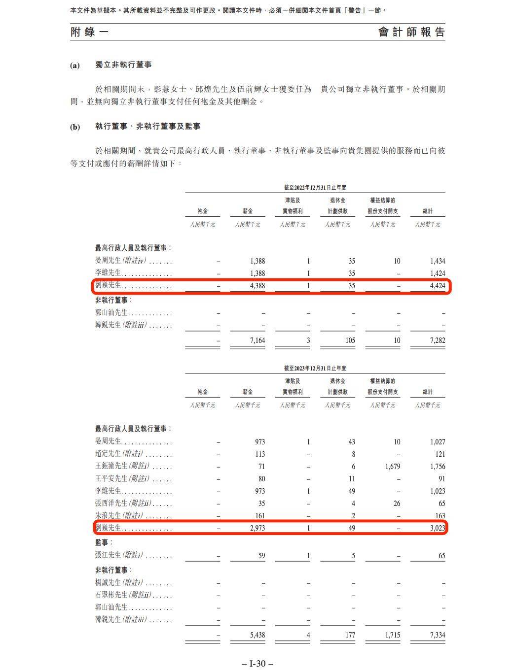 在招股书披露的最高行政人员及执行董事板块中,刘巍2022年的薪酬总计约(包含薪金、津贴、股权支付开支等)442.4万元。同期,该公司董事长兼总经理晏周的薪酬总计143.4万元,仅约为刘巍的三分之一。