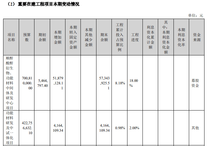 濮阳惠成在2022年半年报中披露,截至目前,“高纯氢气及特种气体项目(一期)”已建成。在项目本期变动情况中,该项目本期期末余额仅为650.48万元,工程累计投入占预算数比例为6.97%,但工程进度已达到50%。