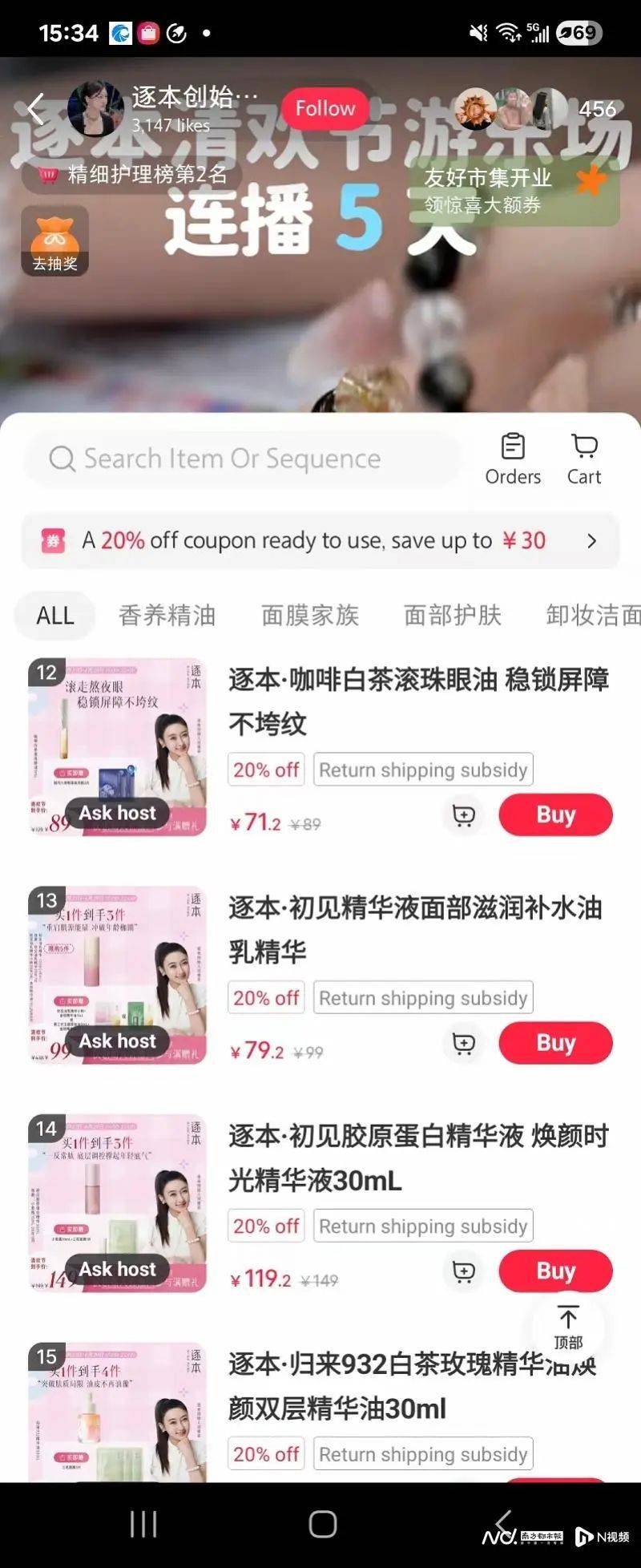 在这场直播中,南都记者注意到,未有精油类相关产品上架,商品链接多为护发、护理身体、面膜、睡眠喷雾等产品,个别为面部精华油,但未见上述提到的眼部精华油、精华液和身体乳产品。不过,在该帐号的小红书店铺中,单方精油依然在照常售卖,南都记者点击进入商品页面看到价格为“199元任选4瓶”,可选精油种类包括茶树、薰衣草、迷迭香等,“墨红系列”产品同样无法在小红书店铺中搜索到。