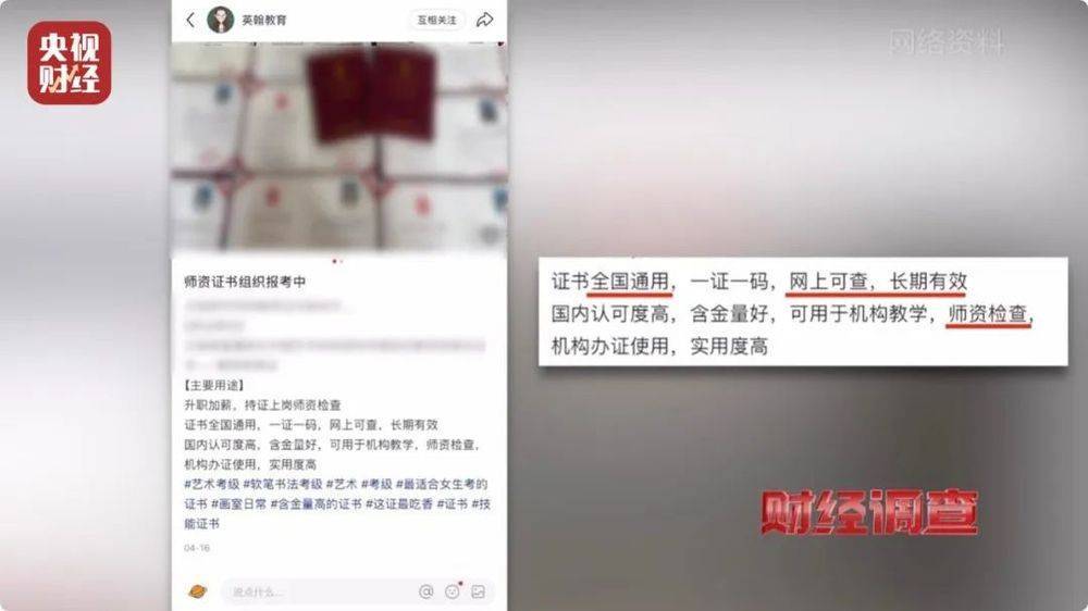 其中,讲到的师资证书帖子中,都提到了全国通用、全网可查、长期有效、应对检查等关键词。