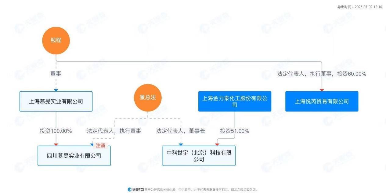 而上海悦芮的法定代表人钱程曾因四川慕旻实业有限公司与金力泰原董事长景总法产生交集。