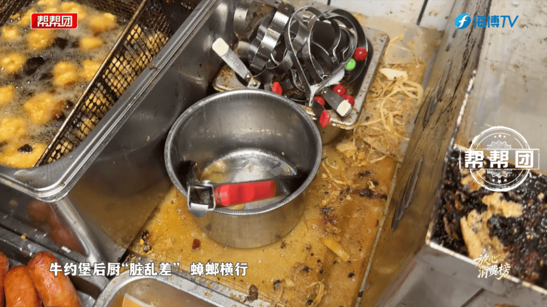 7月2日,知名汉堡连锁牛约堡被曝后厨成蟑螂窝、罐头架上5只蟑螂在爬行、烤台污渍凝固、冰箱内食材裸露存放。