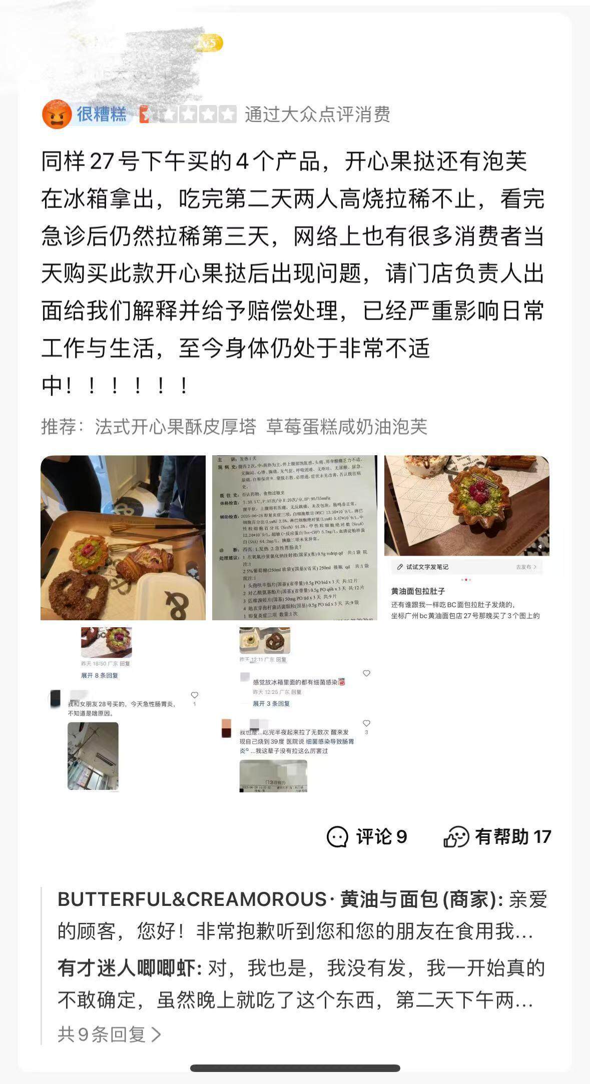 多人称食用“黄油与面包”食品后腹泻发烧:有人称确诊胃肠炎