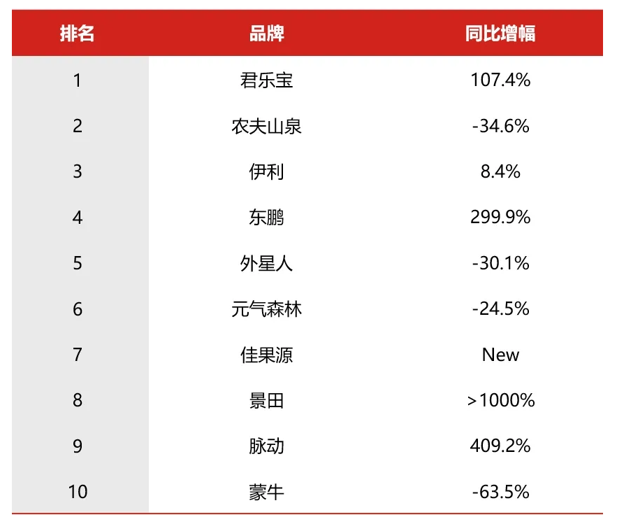 为了提升品牌影响力,君乐宝不惜重金投入营销。例如,其旗下品牌简醇成为热门综艺《歌手2024》的独家冠名商,同时赞助中国国家体操队和花样游泳队,以期提升品牌认知度。另根据CTR媒介智讯Ad Cube广告数据库的数据显示,2024年饮料行业户外广告刊例花费TOP10品牌中,君乐宝高居榜首,同比增幅高达107.4%。