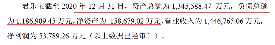 随后,“不差钱”的君乐宝进入快速扩张期,但快速扩张带来不少问题:短期内全国多地建生产基地提升了市场占有率,却使负债持续攀升。我们从与君乐宝有过股权交易的皇氏集团的公告里能看到了一些端倪。截至2020年底,君乐宝资产总额为134.56亿元,负债总额为118.69亿元,负债率达88.21%。