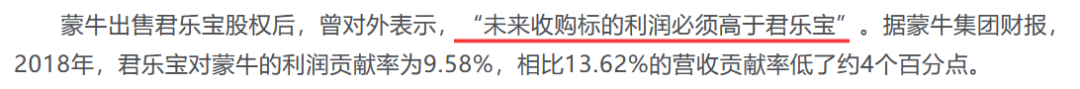 有蒙牛高管曾表示“未来收购标的利润率必须高于君乐宝”,可见君乐宝有多“不受待见”。