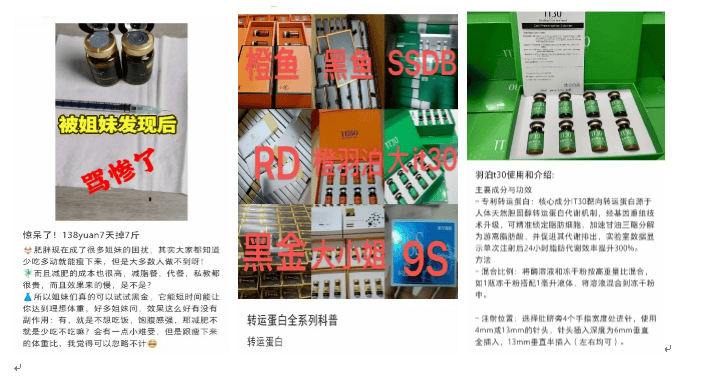近日,随着越来越多GLP-1产品的获批,“减肥针”开始爆火,但是蓝鲸新闻发现,线上平台出现多款自称“转运蛋白”系列产品,包括it30、黑金等,这些针剂需要自己配比进行注射,而多位消费者反映使用后出现剧烈的胃痛和呕吐。蓝鲸新闻咨询多位专家和业内人士,都对“转运蛋白”一无所知。