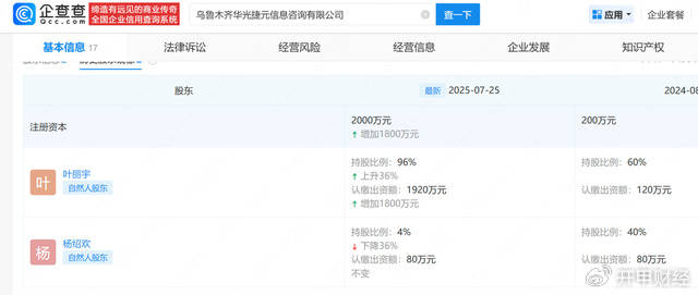 企查查显示,广西企云网络技术有限公司的法定代表人名下有4家公司,其中包括贵阳市云岩区广弘小额贷款有限公司、乌鲁木齐华光捷元信息咨询有限公司等,乌鲁木齐华光捷元信息咨询有限公司股东包括一名叫杨绍欢的自然人,杨绍欢这个名字此前曾出现在广西云腾智创和杭州云驱智汇股东名字一致,这难道是巧合吗?
