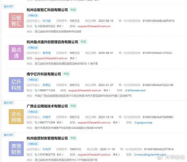 企查查显示,杭州云驱智汇与昔日P2P盈盈理财存在密切关联。盈盈理财创始人为原支付宝高管叶进武。2023年、2024年,杭州云驱智汇的办公电话都与盈盈理财关联公司所用电话一致。此外,杭州云驱智汇使用邮箱与盈盈理财叶进武实际控制的杭州鼎贤财务管理有限公司等一致。