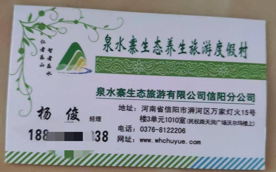 会上,集团的负责人向大家介绍,“泉水寨养老项目”,由武汉楚月集团有限公司(以下简称“楚月集团”)旗下的湖北泉水寨颐馨产业投资股份有限公司(以下简称“湖北泉水寨公司”)投资开发,其在信阳地区的业务推广由信阳分公司负责。