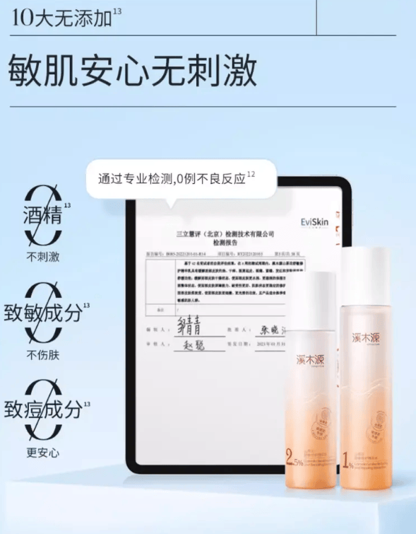 然而,在食品安全领域已成历史的“零添加”概念,却在化妆品行业持续野蛮生长,以敏感肌护理头部品牌溪木源为代表的企业,仍在大肆宣传“0酒精”“0致敏成分”等话术,引发行业对营销伦理与监管滞后的双重质疑。