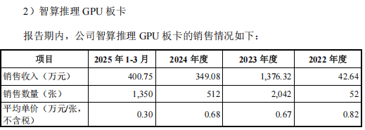 智算推理GPU曦思N100系列收入从2023年的1376.32万元骤降至2024年的349.08万元,同比下滑74.64%