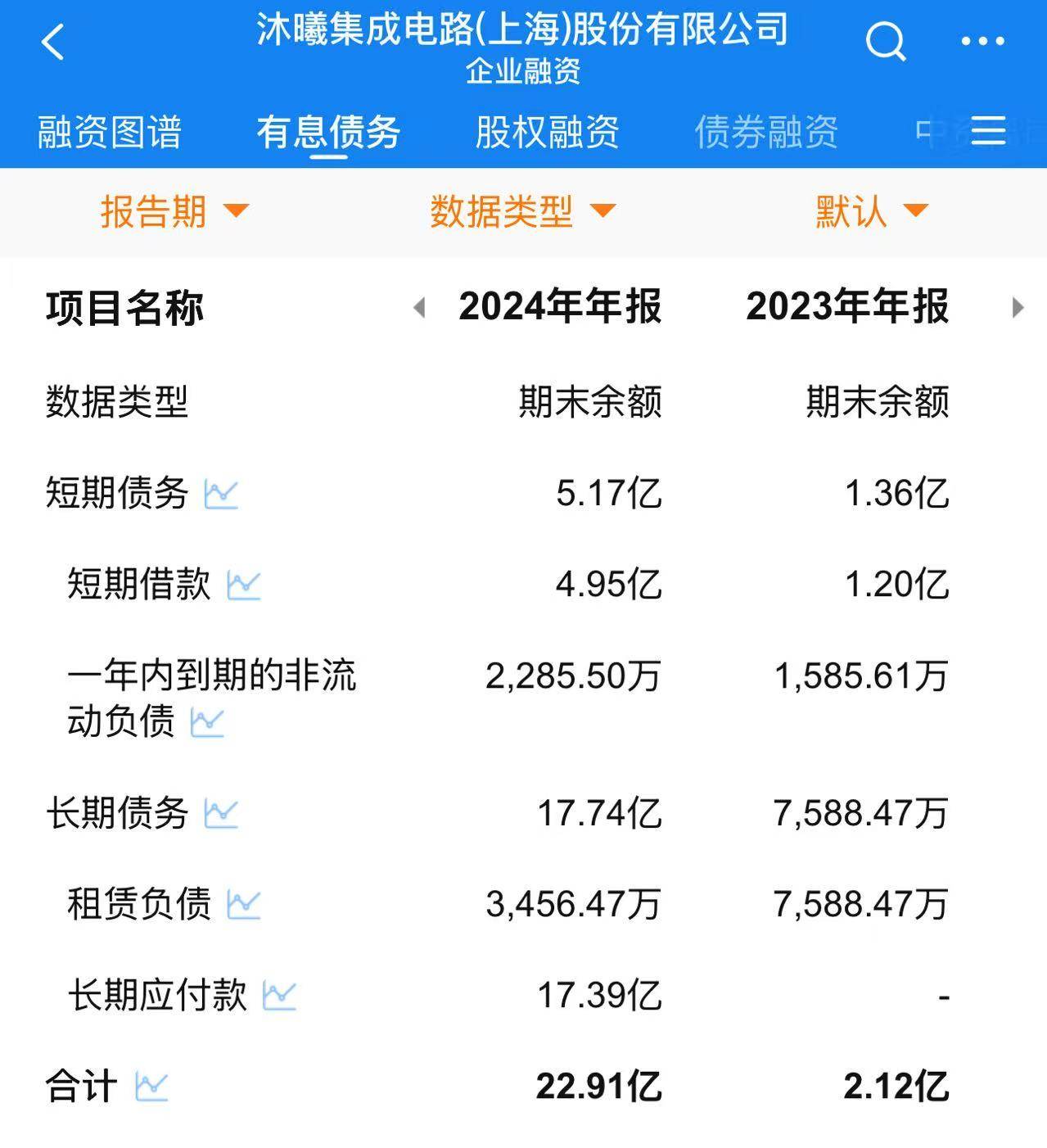 截至2025年一季度,沐曦股份债务总额虽降至4.32亿元(短期债务3.98亿元,长期债务0.34亿元)。但这一“好转”背后暗藏玄机: