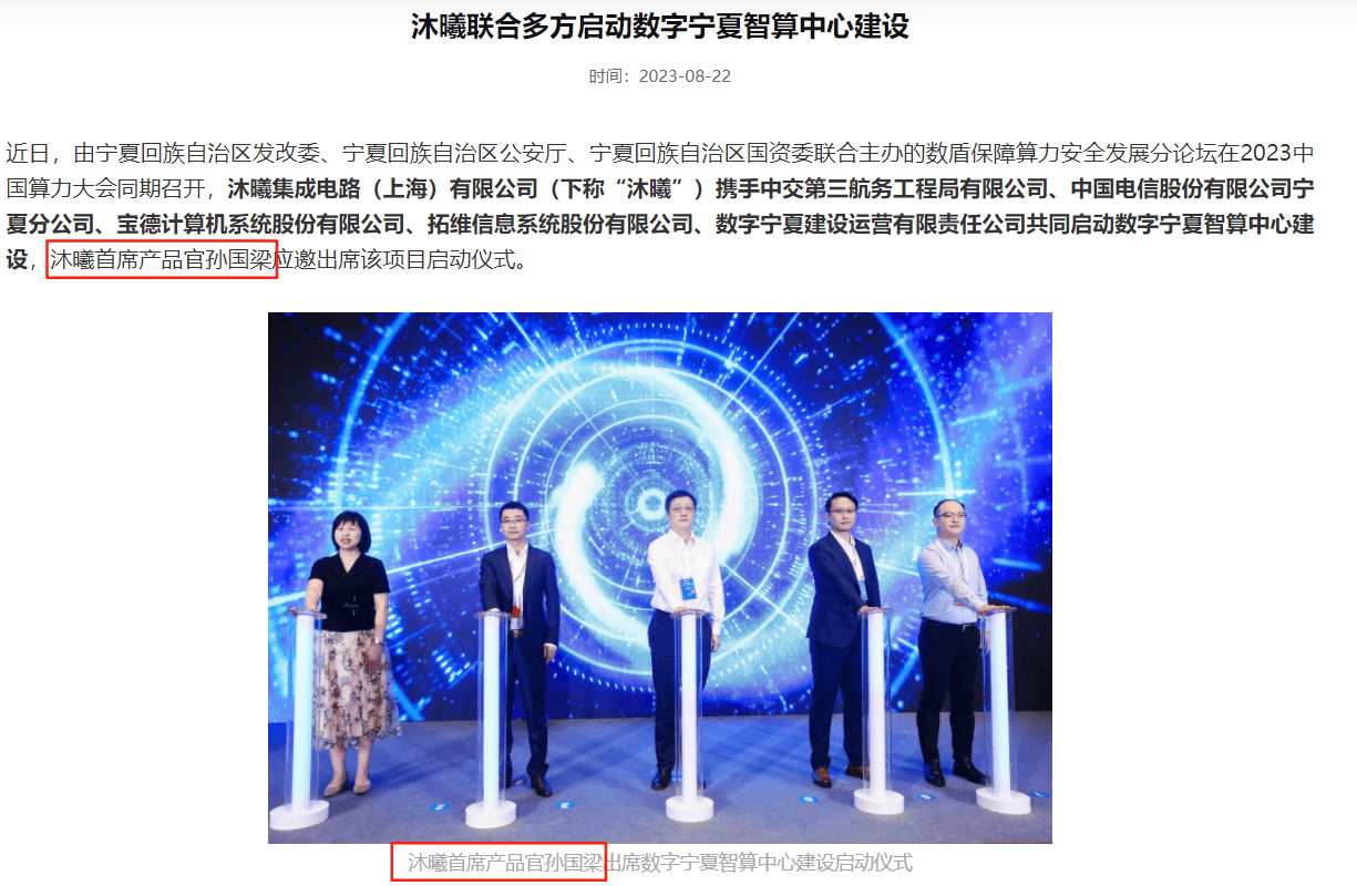 瞭望塔财经还注意到,公司在供应链合作方涉关联交易。2023年8月,孙国梁曾代表沐曦参与“数字宁夏智算中心”建设,而该项目合作方(如中交三航局、中国电信宁夏分公司)是否与其外部企业存在业务往来?招股书未作排查说明。