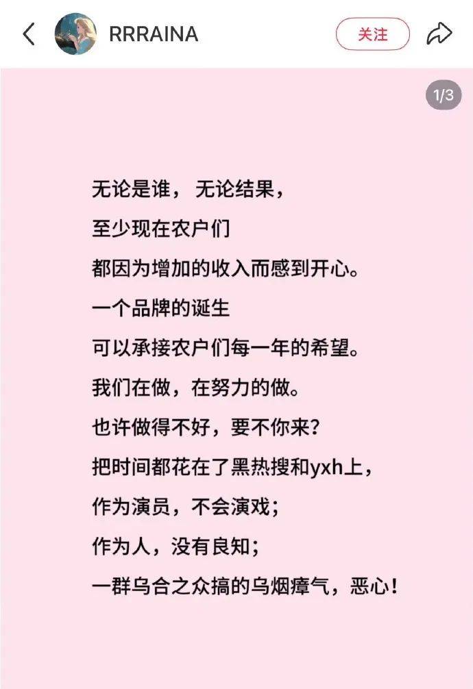 对此,赵露思闺蜜发文回应:“至少现在农户们都因为增加的收入而感到开心。一个品牌的诞生,可以承接农户们每一年的希望。我们在做,在努力的做。也许做得不好,要不你来?”
