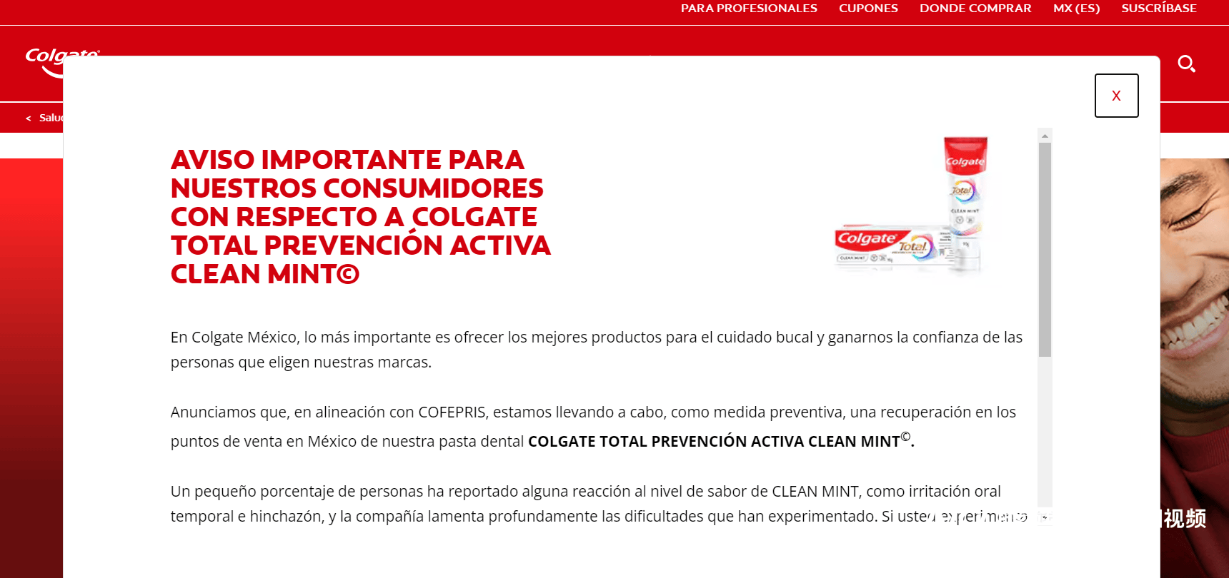 高露洁棕榄公司称,在墨西哥,企业的所有产品均严格遵守当地卫生法规。因此,企业重申其安全性、质量和有效性,并始终致力于为消费者提供最佳体验。