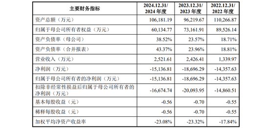然而,这一宏伟蓝图的背面,是持续亏损的财务现实。根据禾元生物最新披露的科创板注册稿,2022年至2024年,公司营业收入分别仅为1,339.97万元、2,426.41万元和2,521.61万元,三年净亏损合计接近4.82亿元,尚未实现商业化销售。与此同时,公司账上现金从2022年中期的6.54亿元锐减至2024年底的1.6亿元,资产负债率则由18.8%攀升至43.4%。