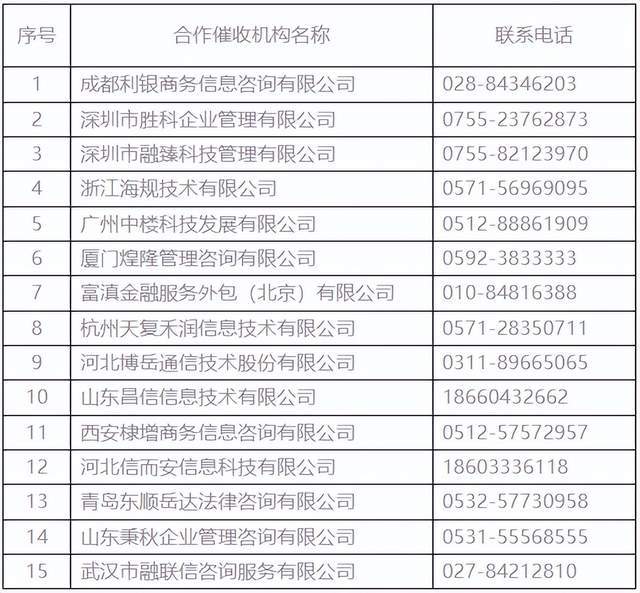 以下是海尔消金合作催收机构名单: