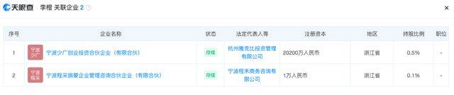 此外,天眼查信息显示,李橙名下持有宁波少广创业投资合伙企业(有限合伙)0.5%股权,持有宁波程采旃蒙企业管理咨询合伙企业(有限合伙)0.1%股权。股权穿透后,这两家企业实际控制人均为幻方量化创始人梁文锋。