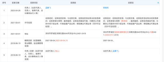 上述报道与天眼查信息对应的是,2018年6月19日至2023年4月26日,孟鹏飞为招商证券深南东路营业部负责人。