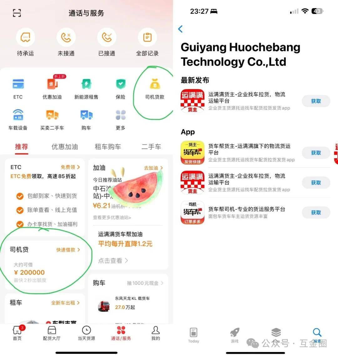 在“运满满货主”APP中,能够轻松的看到「司机贷款」产品入口,该APP由贵阳货车帮科技有限公司发布。
