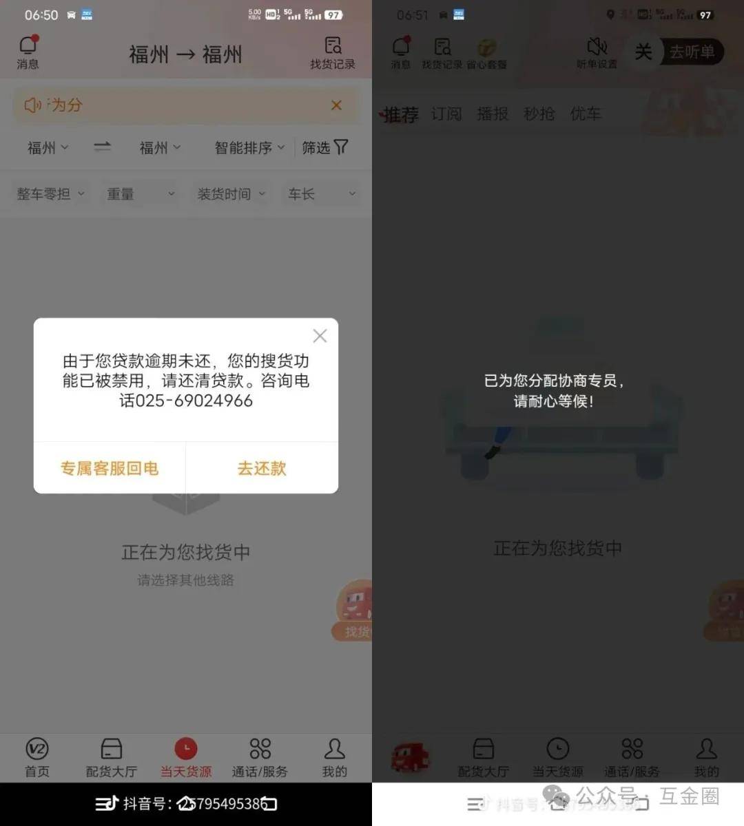 此外,满帮对逾期司机采取极端限制措施:部分司机因逾期“搜货”功能被禁用,从而无法接单,这让借款人的财务困境“雪上加霜”。