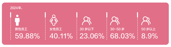 从华侨城2024年ESG报告上看,在员工权益保护方面,该公司表示保障员工在招聘、晋升、薪酬等方面的平等权利,反对任何形式的歧视,2024年员工结构均衡。